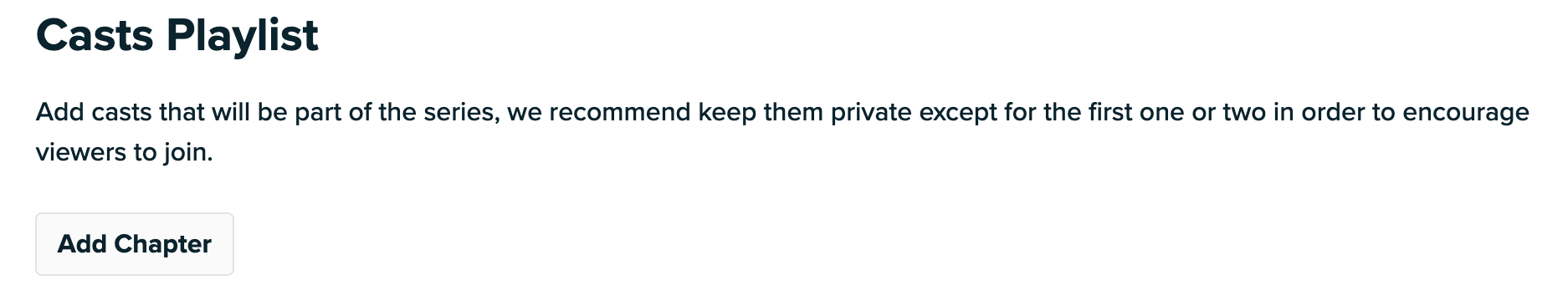 We recommend keeping one or two Casts public so people can view it as a demo and get a feel for what the Series is like!